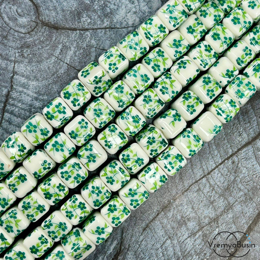Бусина керамическая с рисунком, кубик 8 мм (нить, ок. 42 шт.)