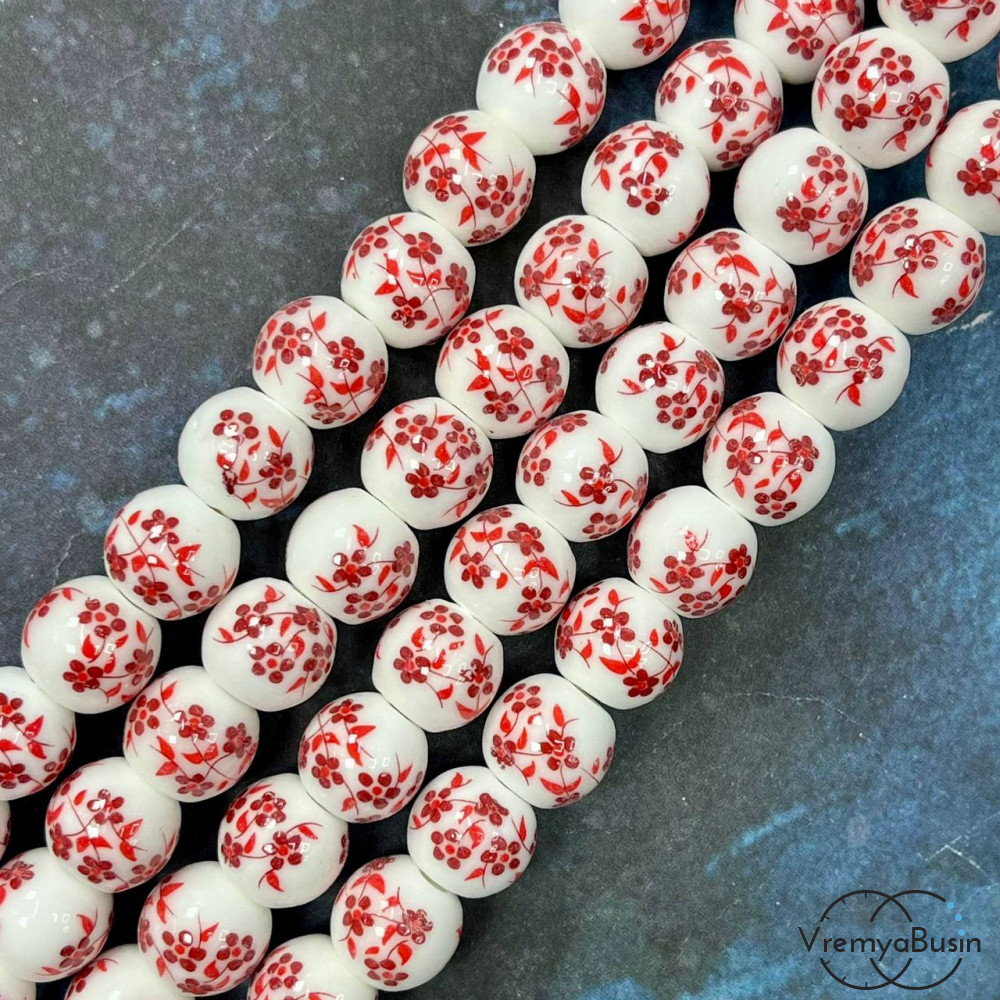 Бусина керамическая с рисунком, шарик 10 мм (нить, ок. 38 шт.)