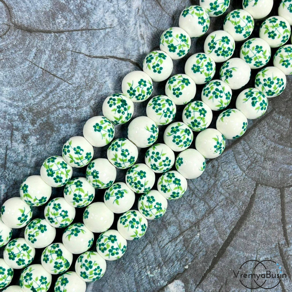 • Бусина керамическая с рисунком, шарик  10 мм (нить, ок. 38 шт.)