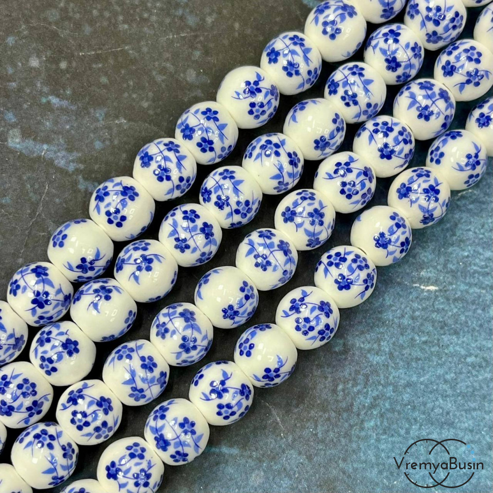 • Бусина керамическая с рисунком, шарик  10 мм (нить, ок. 38 шт.)