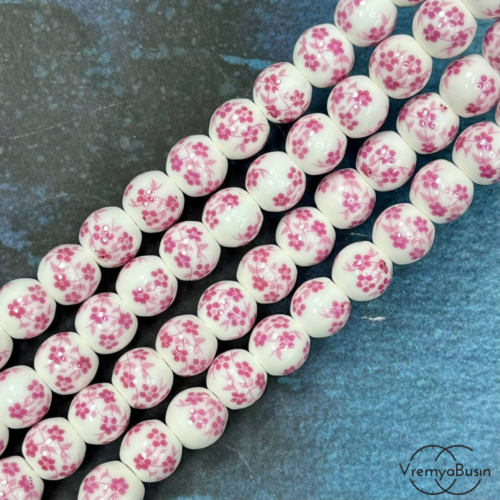• Бусина керамическая с рисунком, шарик  10 мм (нить, ок. 38 шт.)
