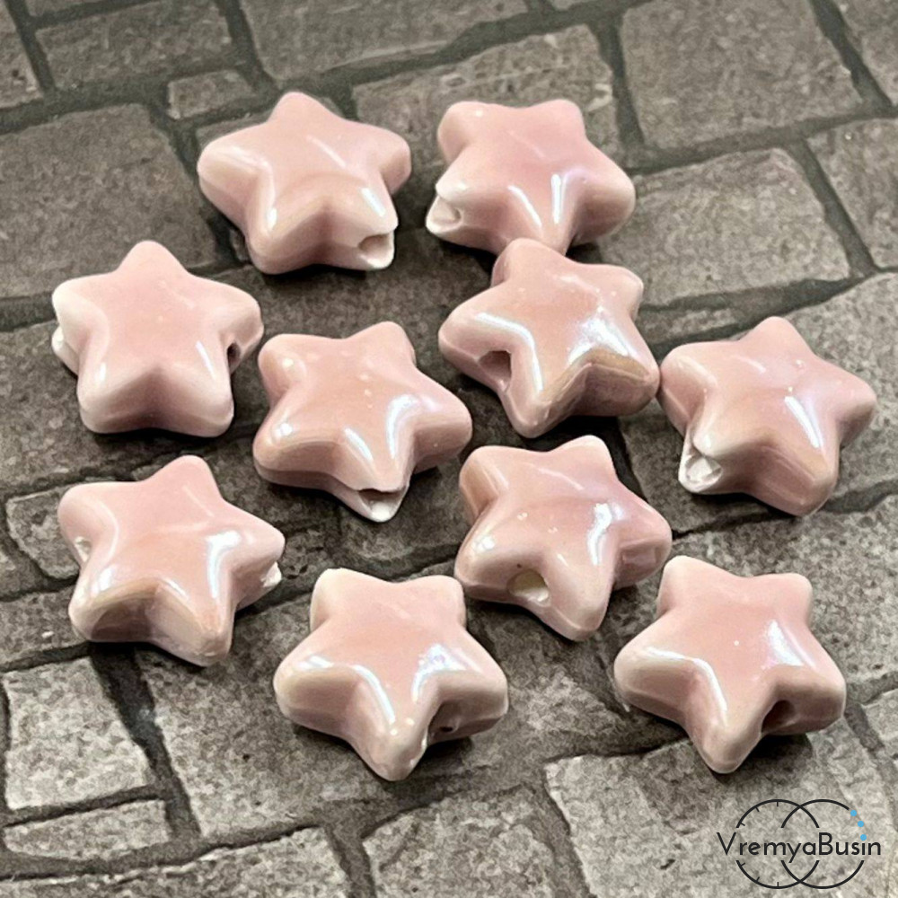 Бусина керамическая "Звездочка", 14х14х8 мм, цв. пыльно-розовый (1 шт.)