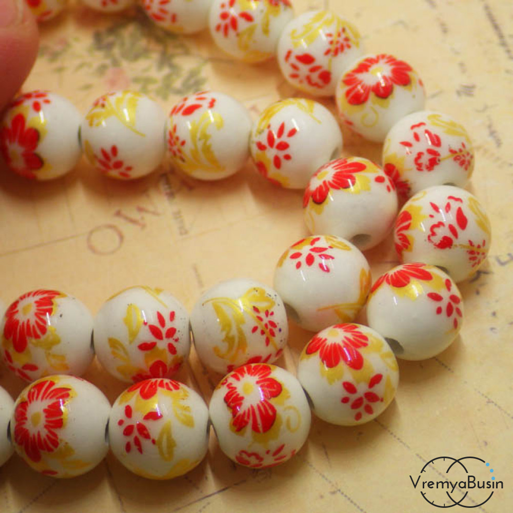 • Бусины из фарфора с цветами, шарик 10 мм (1 шт.)