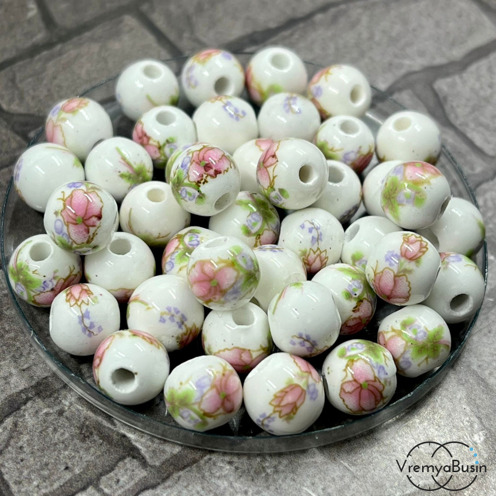 • Бусины из фарфора с цветами, 8 мм (1 шт.)