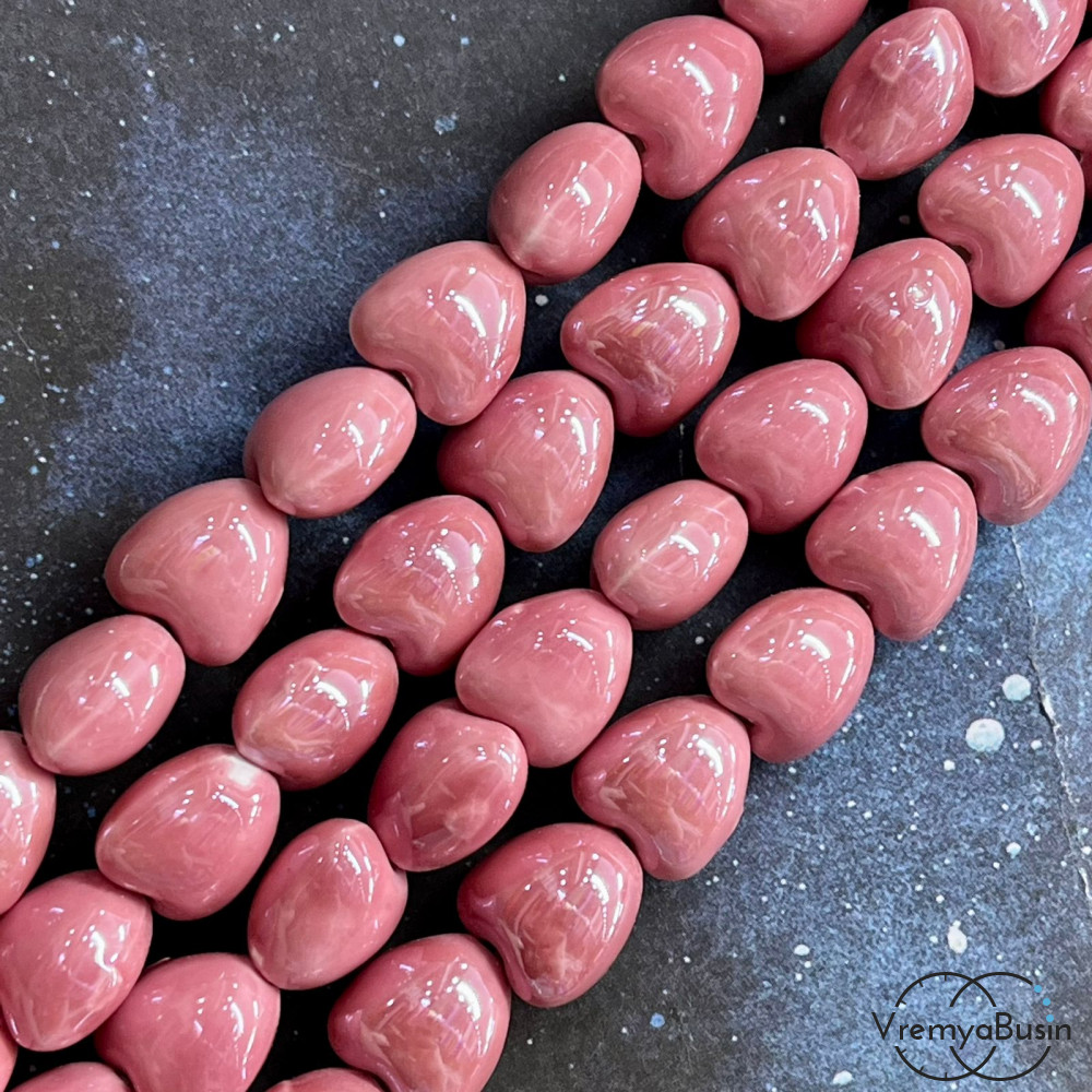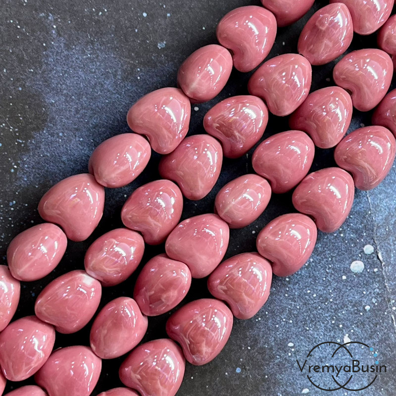 • Бусины керамические "Сердце", 12 мм (1/2 нити, ок. 12 шт.)