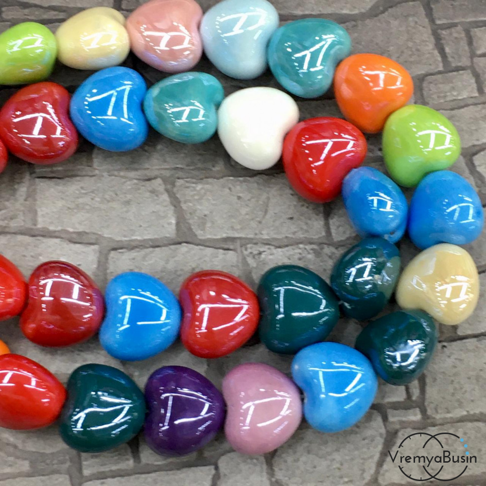 • Бусины керамические "Сердце", 17 мм (1/2 нити, ок. 10 шт.)