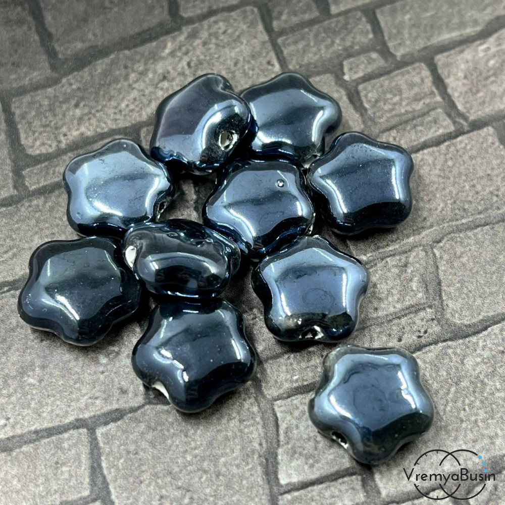 Бусины керамические "Цветочек", 14х6 мм, цв. черный (1 шт.)