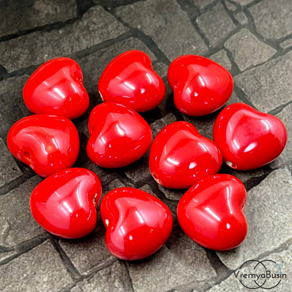 Бусины керамические "Сердце", 17 мм, цв. красный (1 шт.)