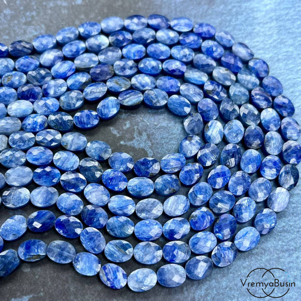 Кианит, овал плоский граненый 6х8 мм (1/2 нити, ок. 24 шт.)