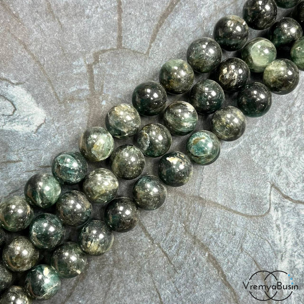 Кианит зеленый, шарик гладкий 10 мм (1/2 нити, ок. 19 шт.)