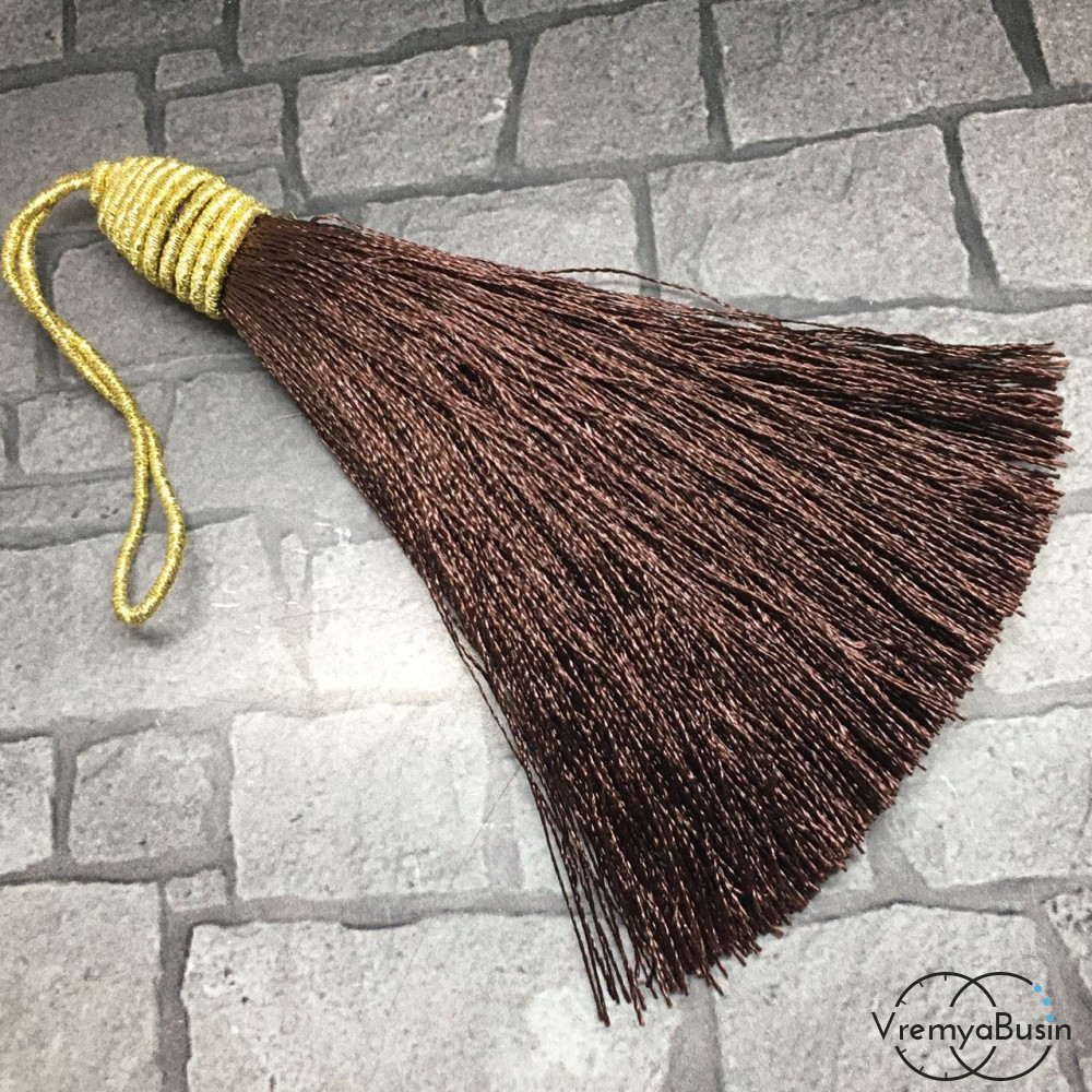 Кисть шелковая 9 см., с петелькой и золотой шапочкой (1 шт.)