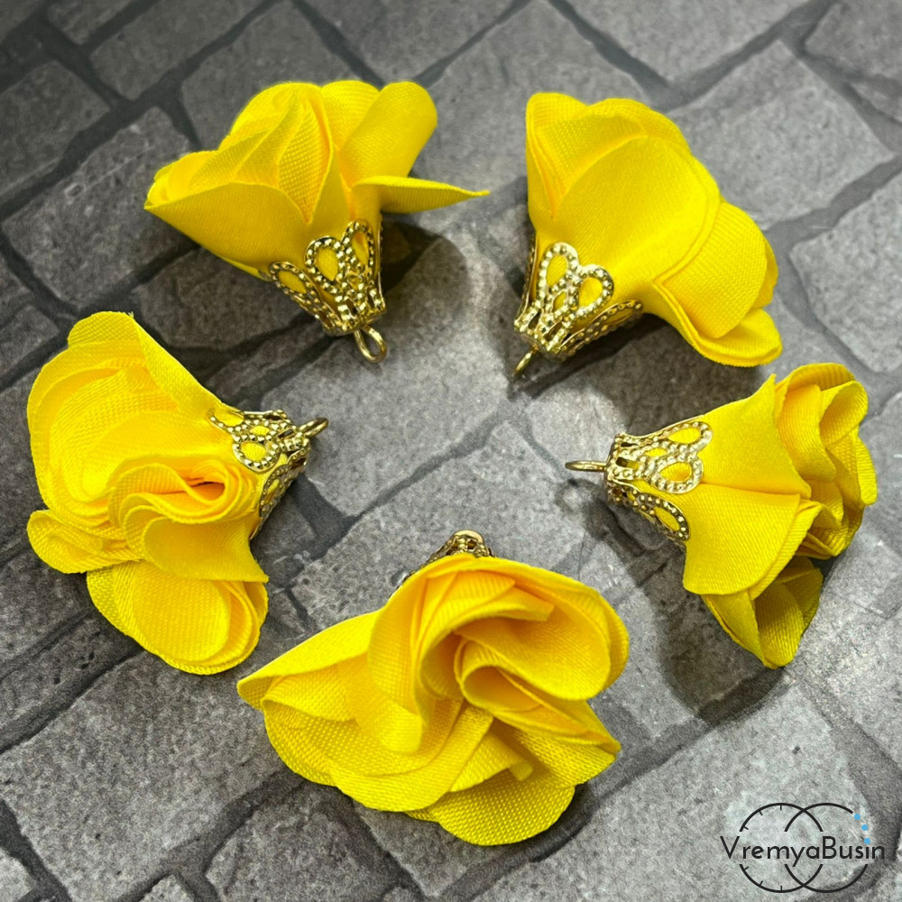 Кисточка из ткани "Цветок" в золотой шапочке, длина 25 мм. (1 шт.)