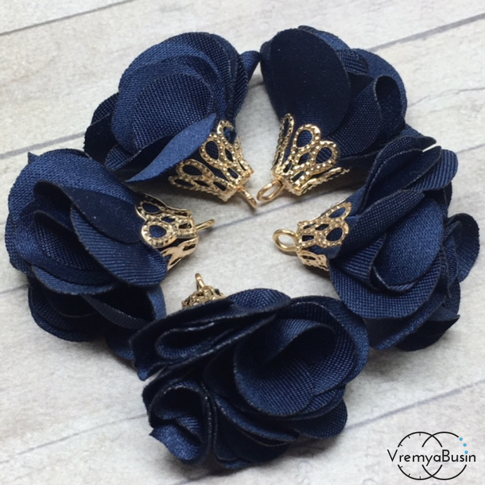Кисточка из ткани "Цветок" в золотой шапочке, длина 25 мм. (1 шт.)