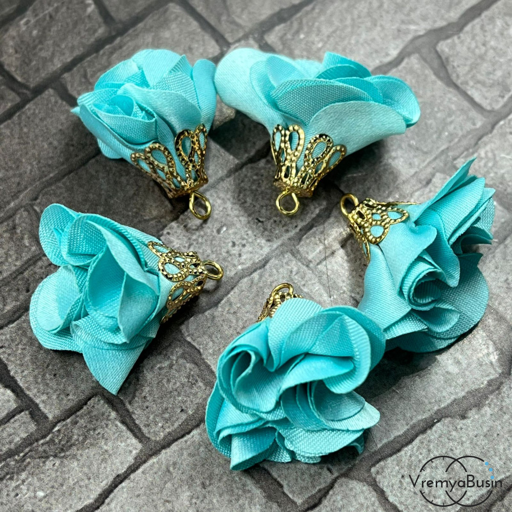 Кисточка из ткани "Цветок" в золотой шапочке, длина 25 мм. (1 шт.)