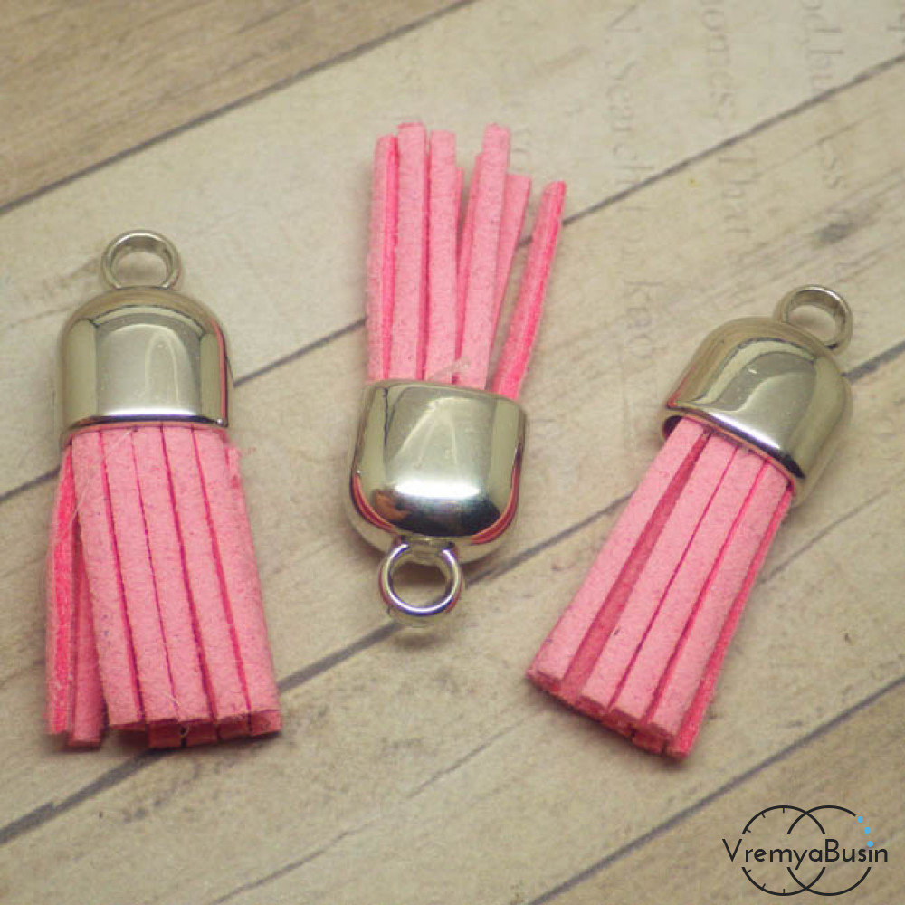 • Кисточка из замшевого шнура в серебряной шапочке. Розовый