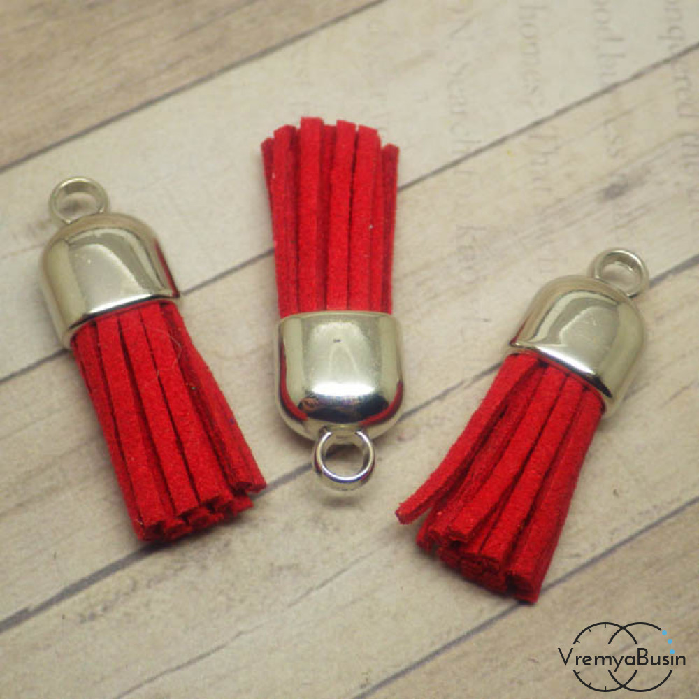 • Кисточка из замшевого шнура в серебряной шапочке. Бордовый