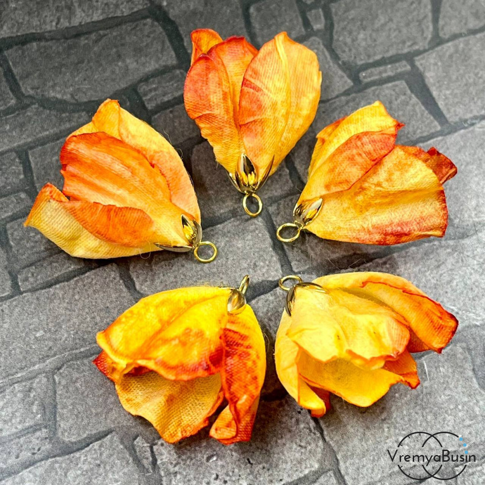 • Кисточки для серег из ткани, цветочный бутон 22х30 мм, цв. желто-оранжевый (упак. 2 шт.)