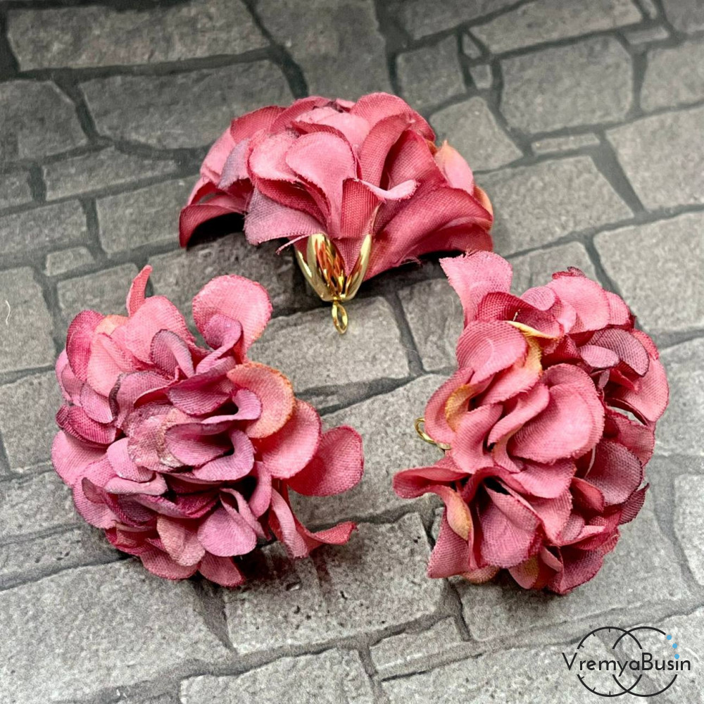 • Кисточки для серег из ткани, цветочный бутон 30х35 мм, цв. вишневый (упак. 2 шт.)