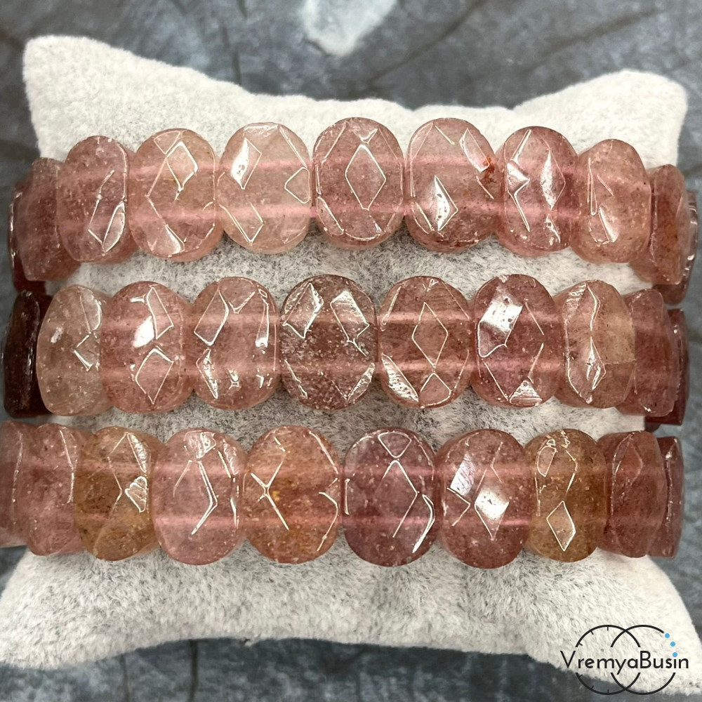 Клубничный кварц. Бусины граненые с 2 отверстиями 10х14 мм (ок. 19 шт.)