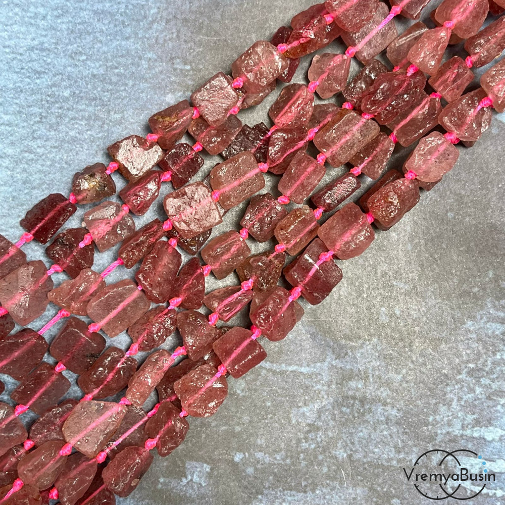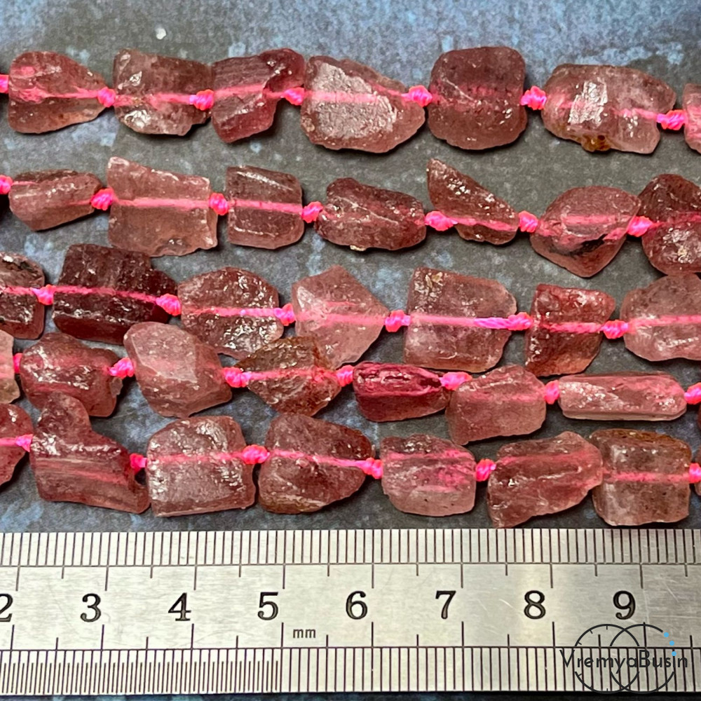 Клубничный кварц, мелкие кусочки необработанного камня (нить, ок. 30 шт.)