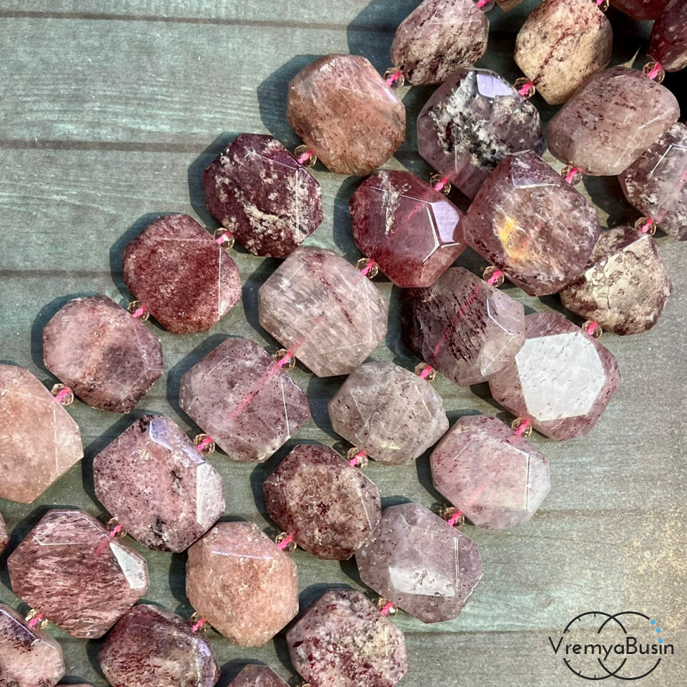 Клубничный кварц, плоские бусины свободной огранки, ок. 25х20х6 мм (1/2 нити, ок. 8 шт.)