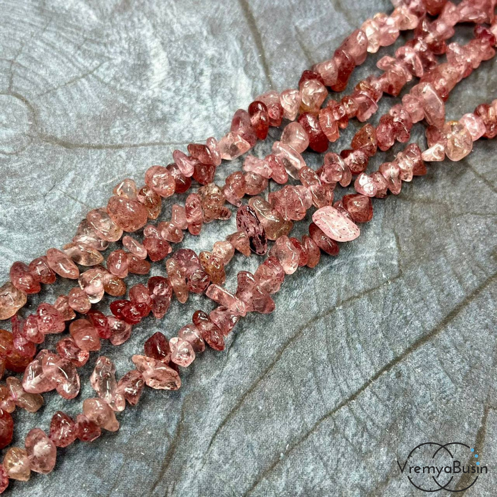Крошка каменная. Клубничный кварц (нить ок. 40 см.)