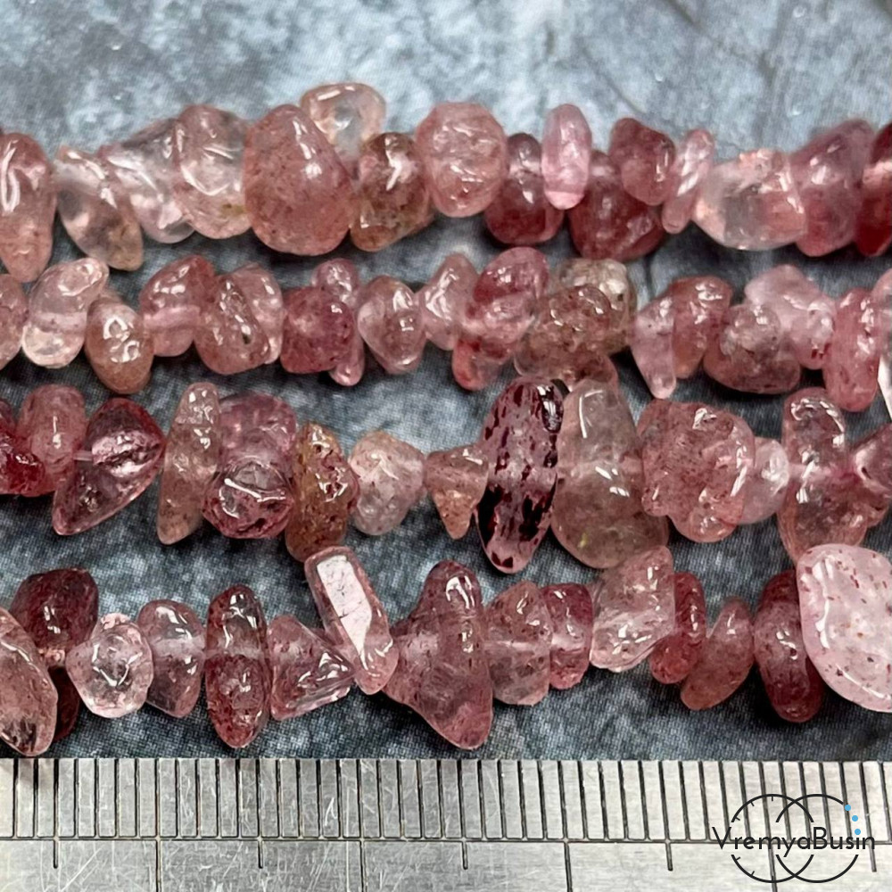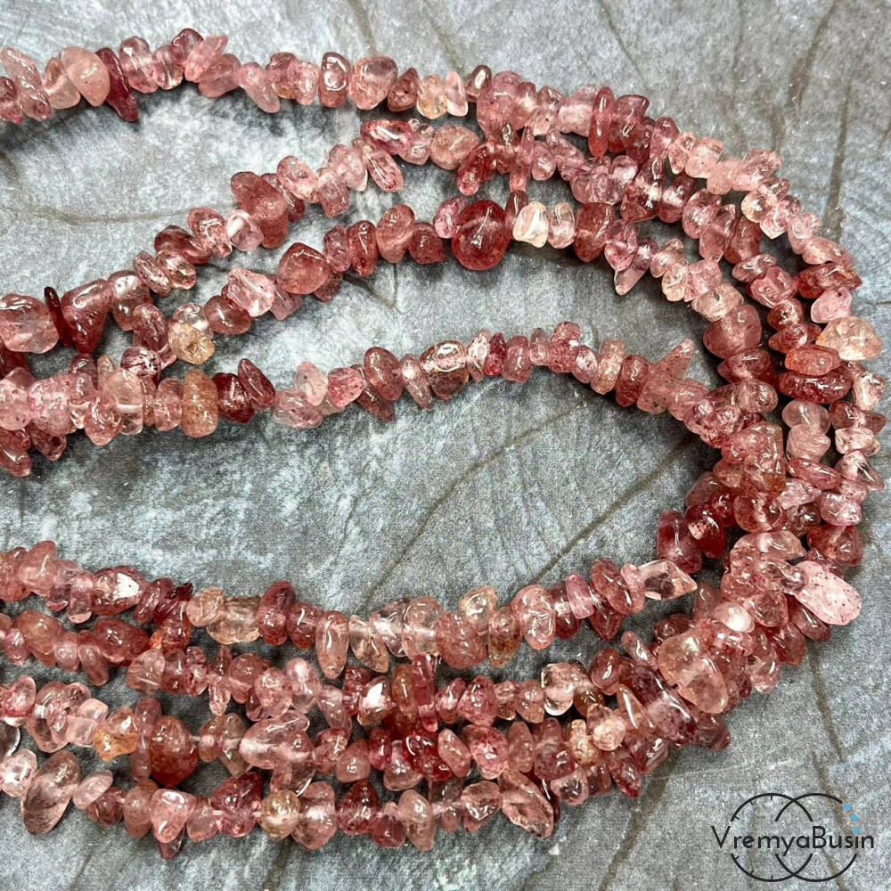 Крошка каменная. Клубничный кварц (нить ок. 80 см.)