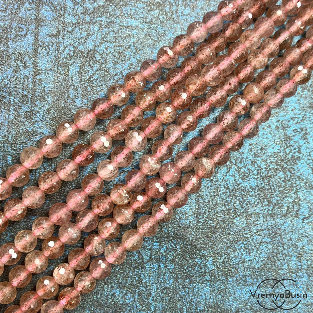Кварц клубничный, шарик граненый 6 мм (1/2 нити, ок. 32 шт.)