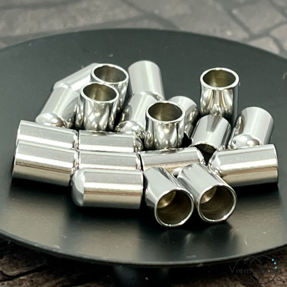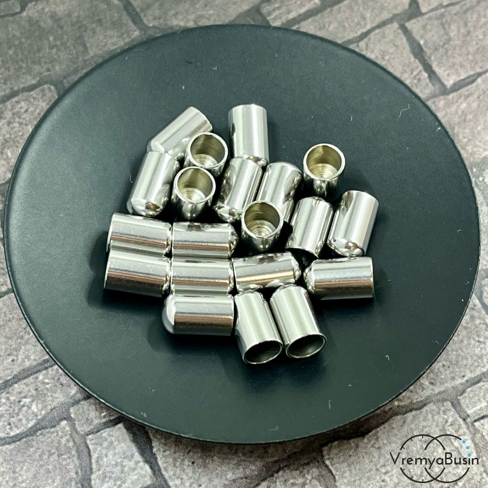 Концевики для шнура из нержавеющей стали, 6х10 мм, для шнура 5 мм (1 пара)