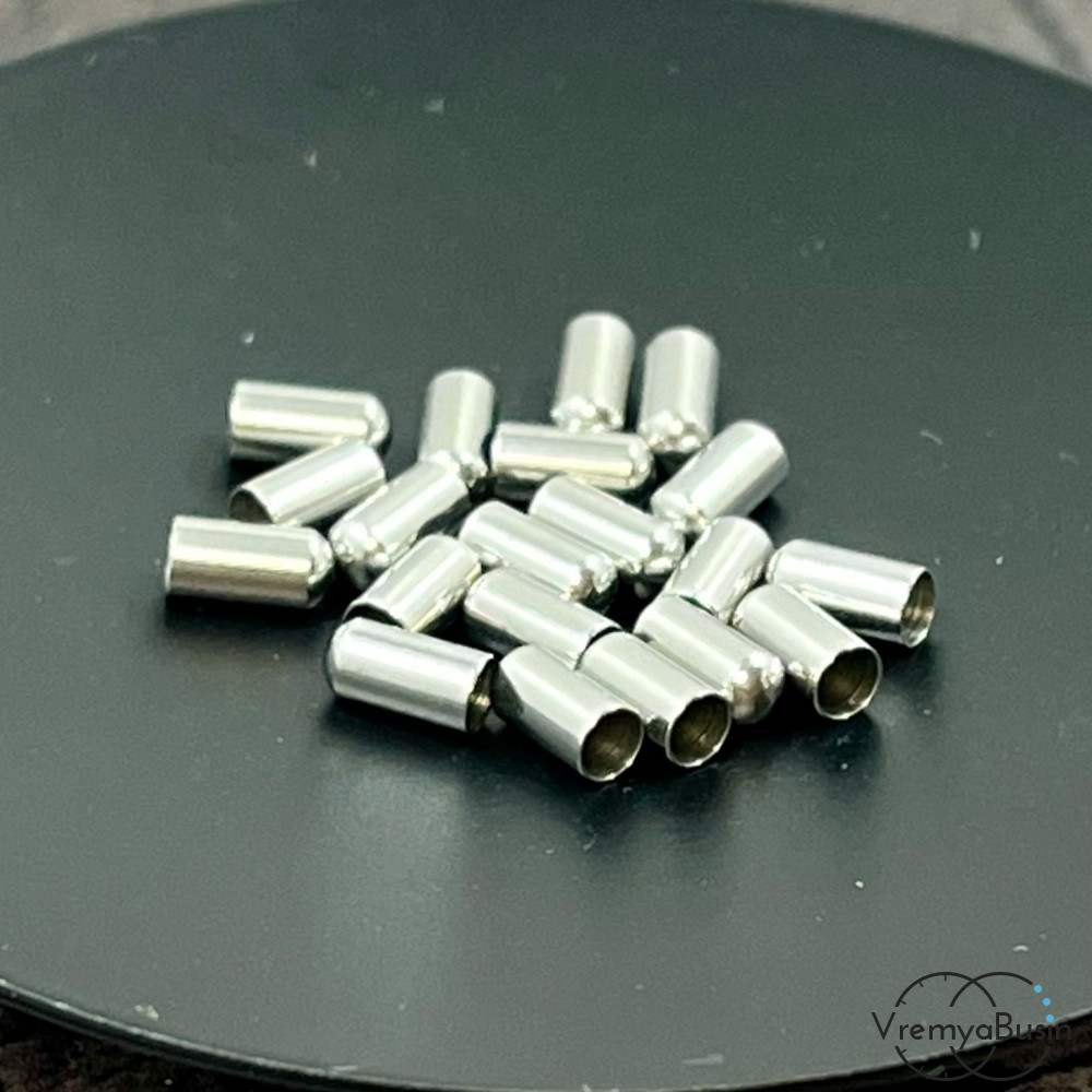 Концевики из нержавеющей стали, 3х6 мм, для шнура 2.5 мм (1 пара)