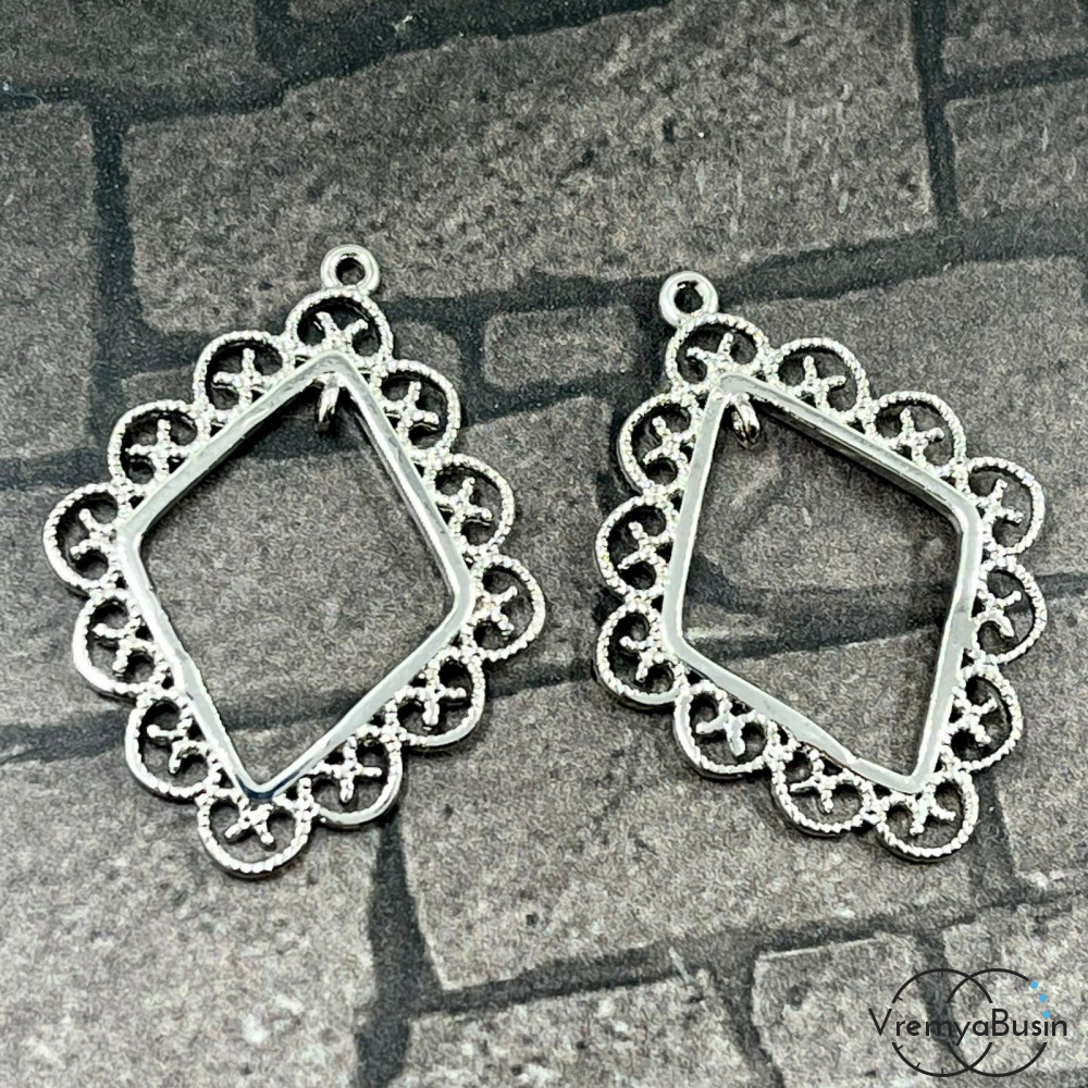 • Элементы для серег, латунь с родиевым покрытием, 22х33 мм  (2 шт.)