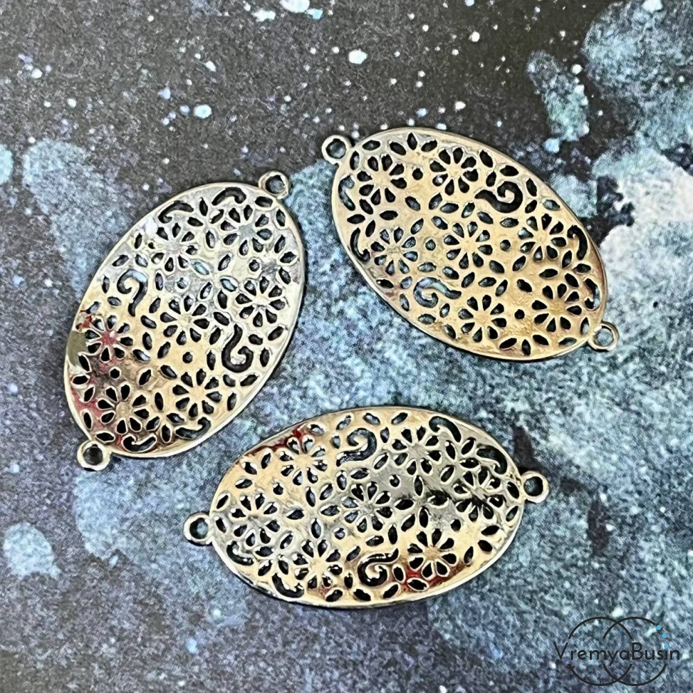 • Коннектор "Кружевной овал", 25х14 мм,  латунь с родиевым покрытием (упак. 2 шт.)