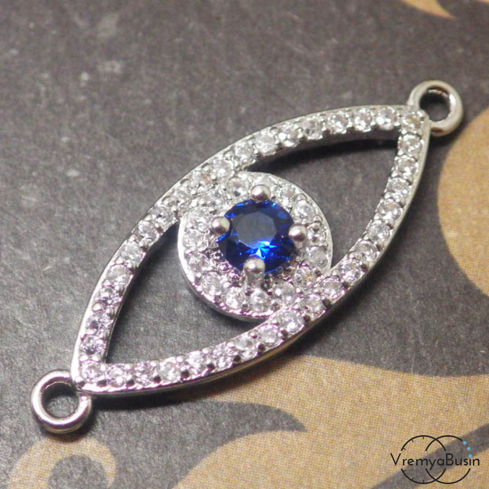 Коннектор. Латунь с родиевым покрытием и фианитами (1 шт.)