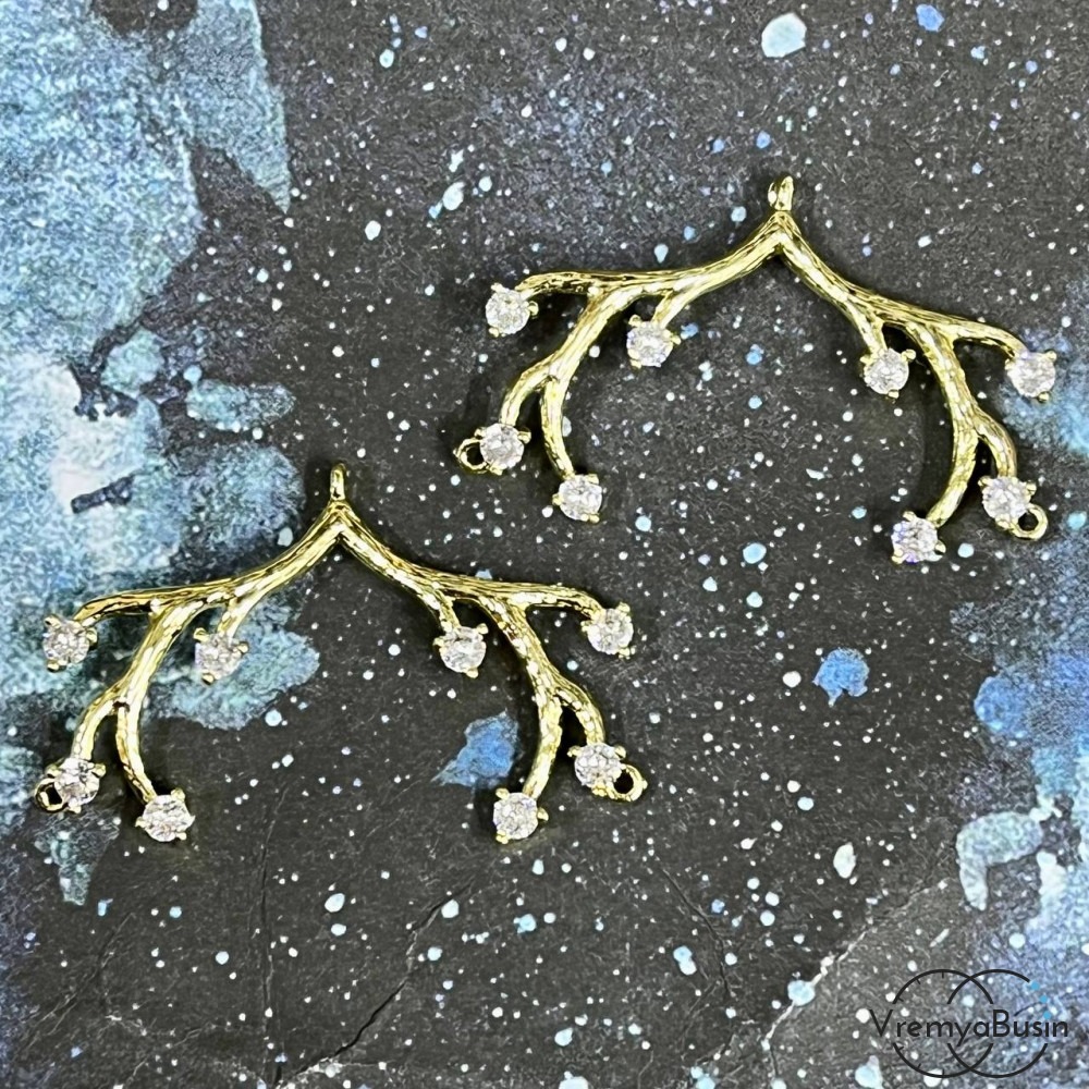 Коннектор "Рожки", 25х36 мм, латунь с позолотой и фианитами (упак. 2 шт.)