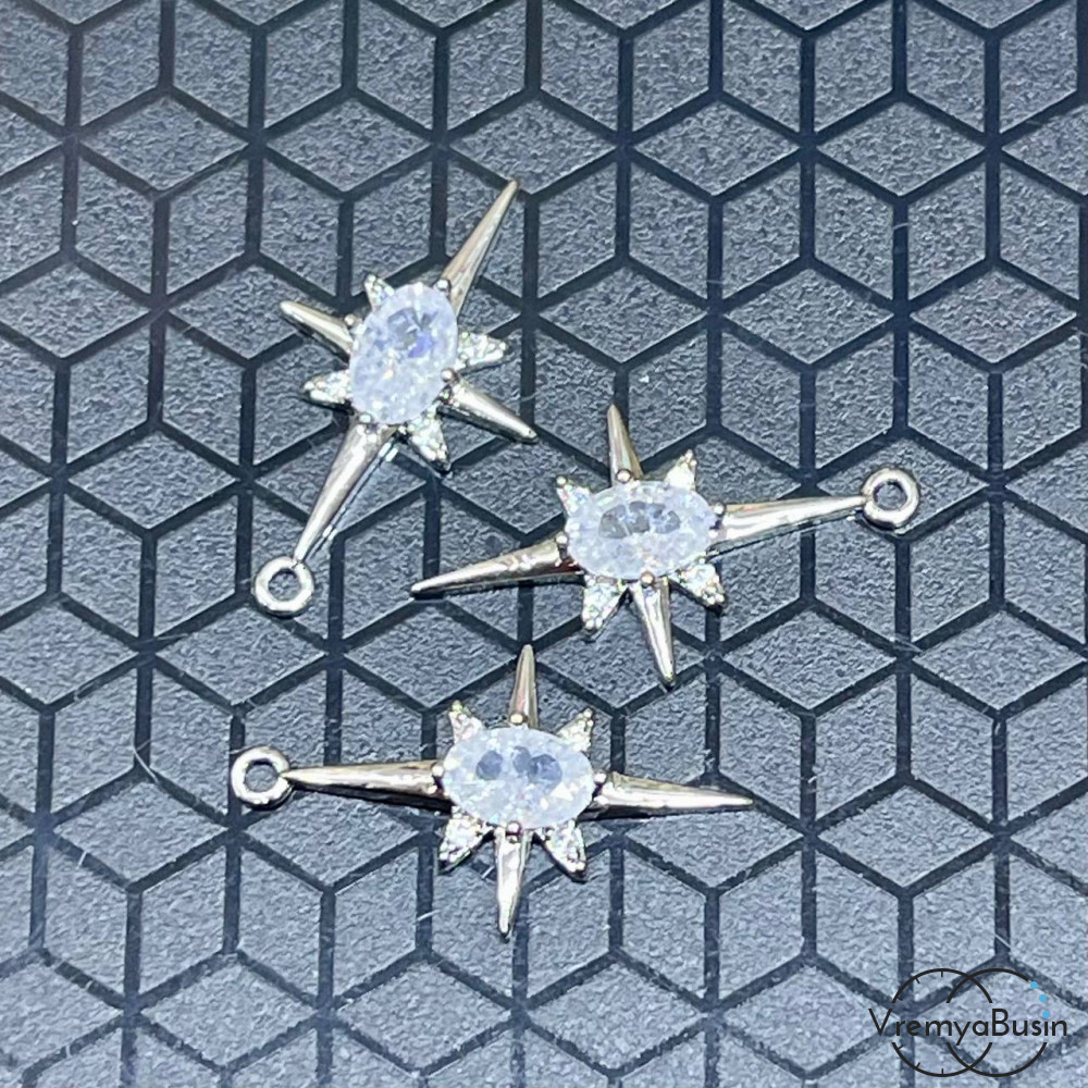 • Коннектор "Звезда", 22х12 мм,  латунь с родиевым покрытием (упак. 2 шт.)