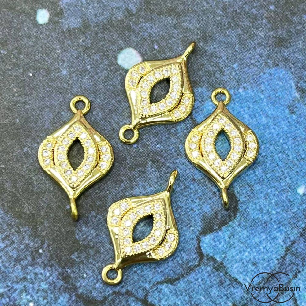 Коннектор с фианитами, 17х10 мм, латунь с позолотой (1 шт.)