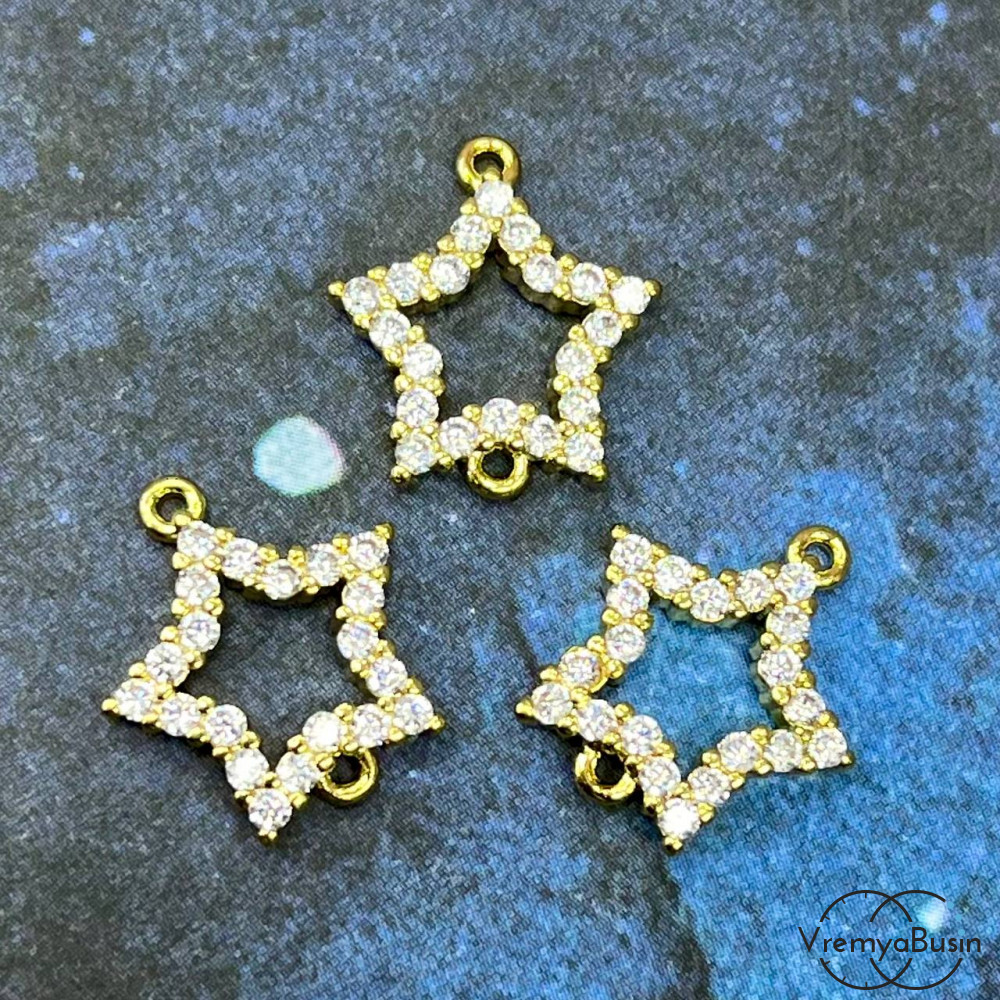• Коннектор с фианитами «Звезда», 14х13 мм, латунь с позолотой (1 шт.)
