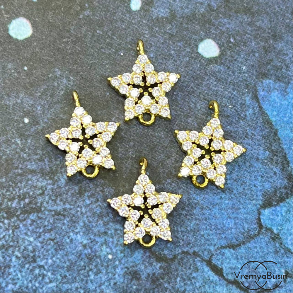 Коннектор с фианитами «Звезда, 14х11 мм, латунь с позолотой (1 шт.)
