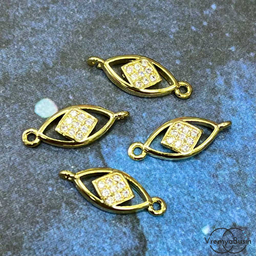 Коннектор с фианитами, 16х6 мм, латунь с позолотой (1 шт.)