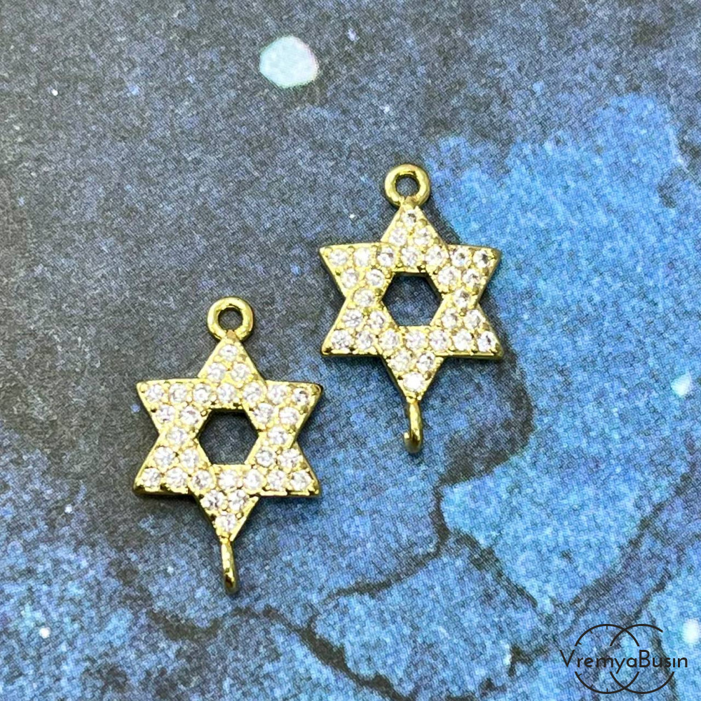• Коннектор с фианитами «Звезда», 10х17 мм, латунь с позолотой (1 шт.)
