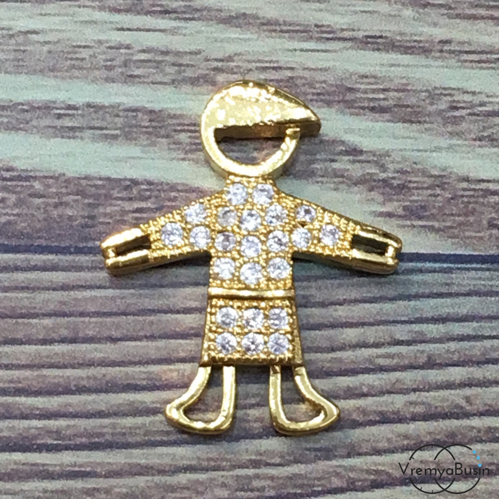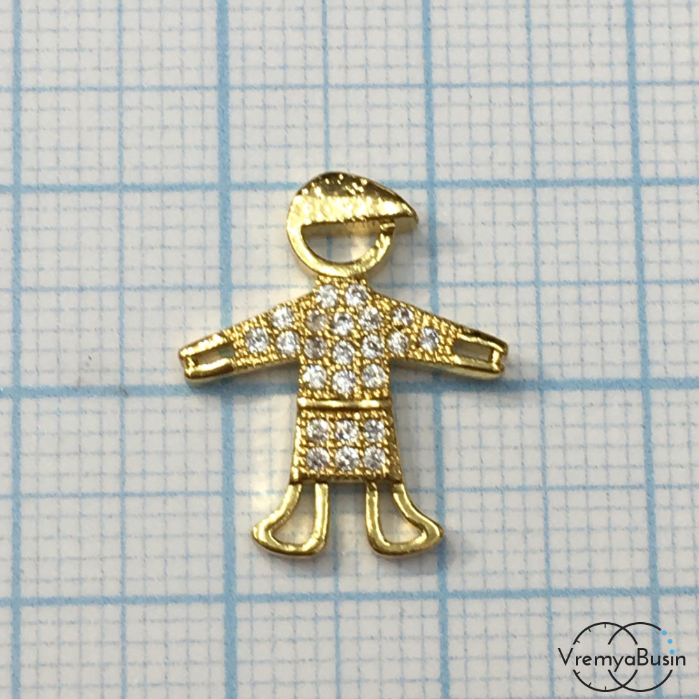 Коннектор с фианитами, латунь с позолотой (1 шт.)