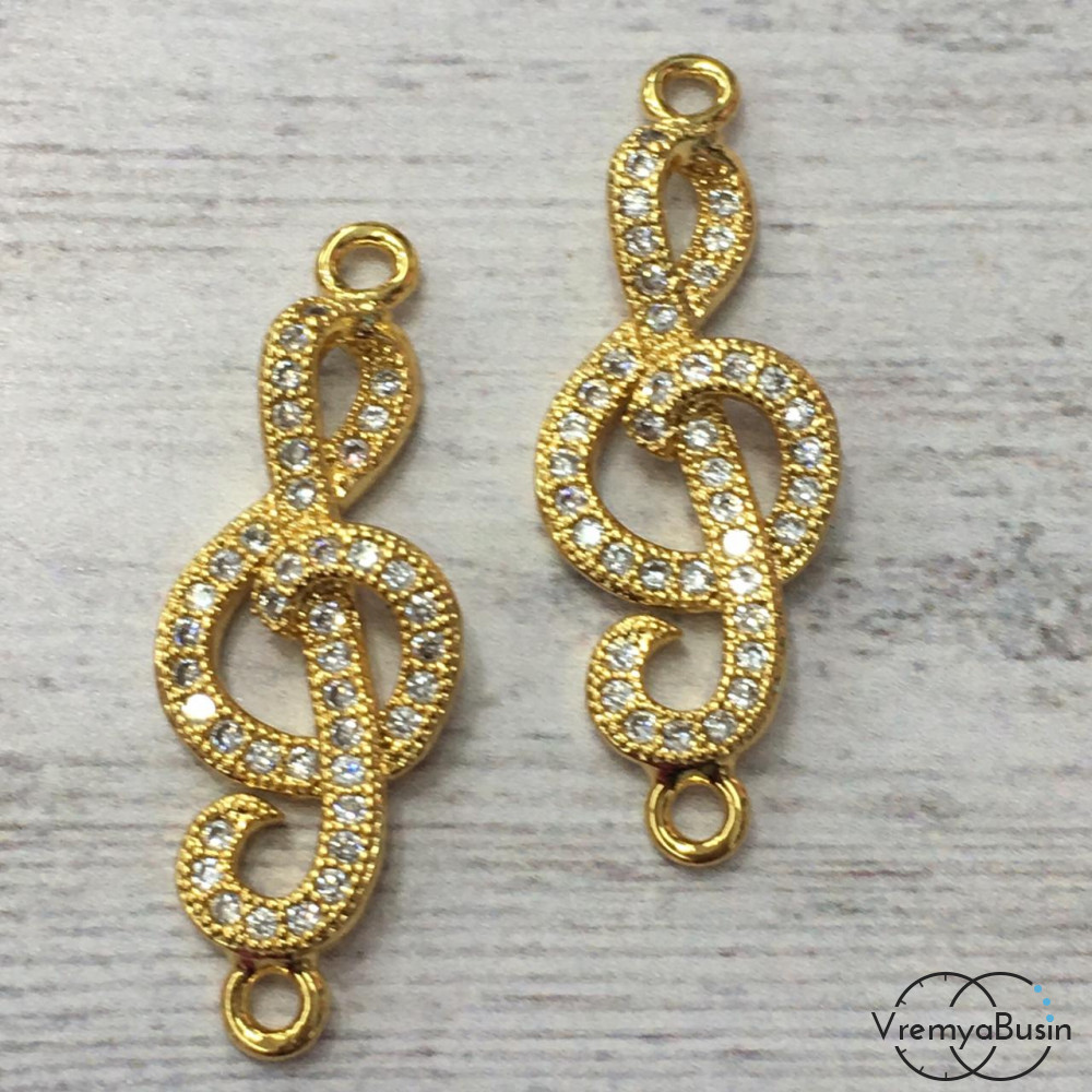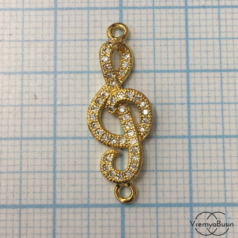 Коннектор с фианитами, латунь с позолотой (1 шт.)