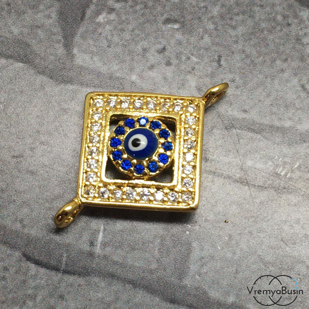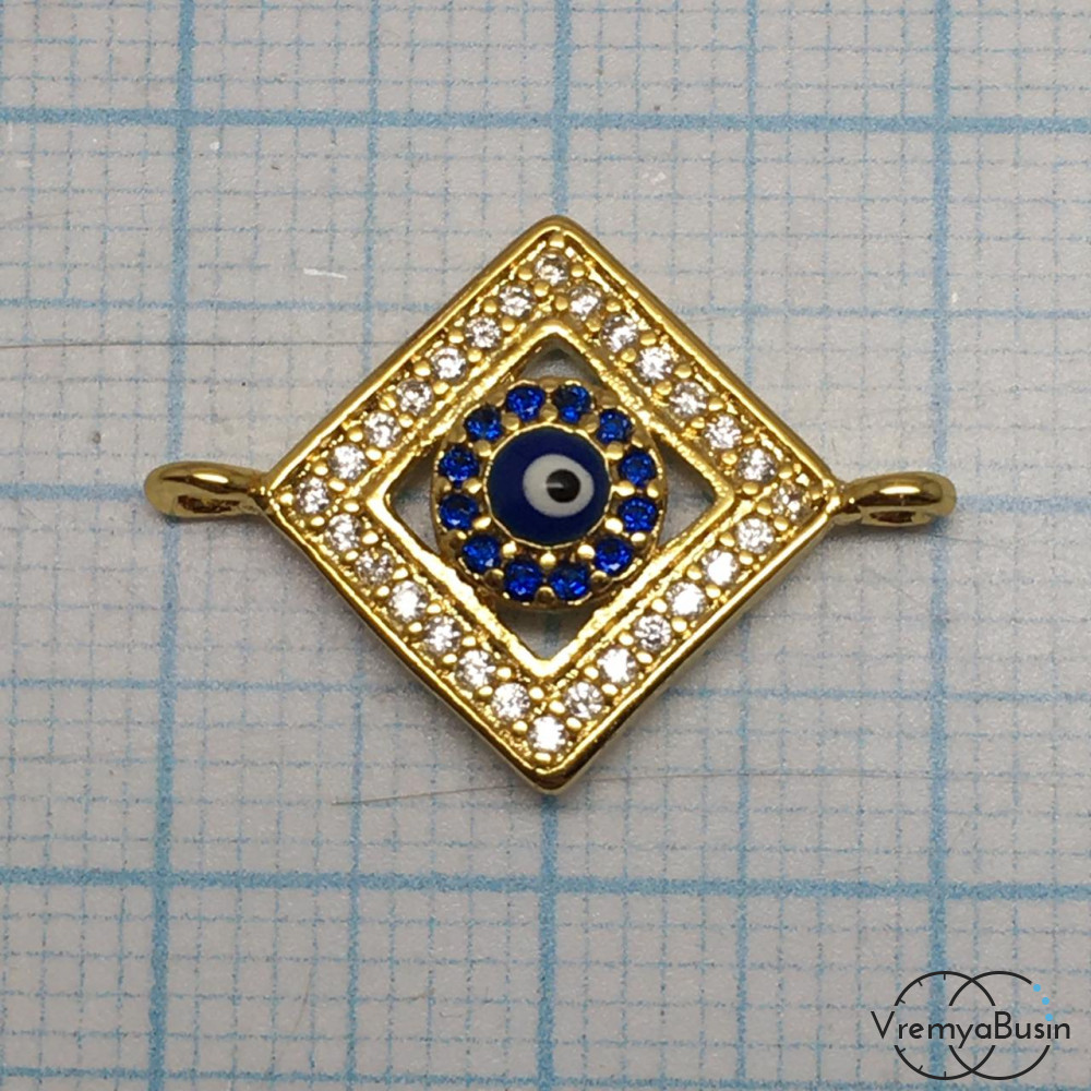 Коннектор с фианитами, латунь с позолотой (1 шт.)