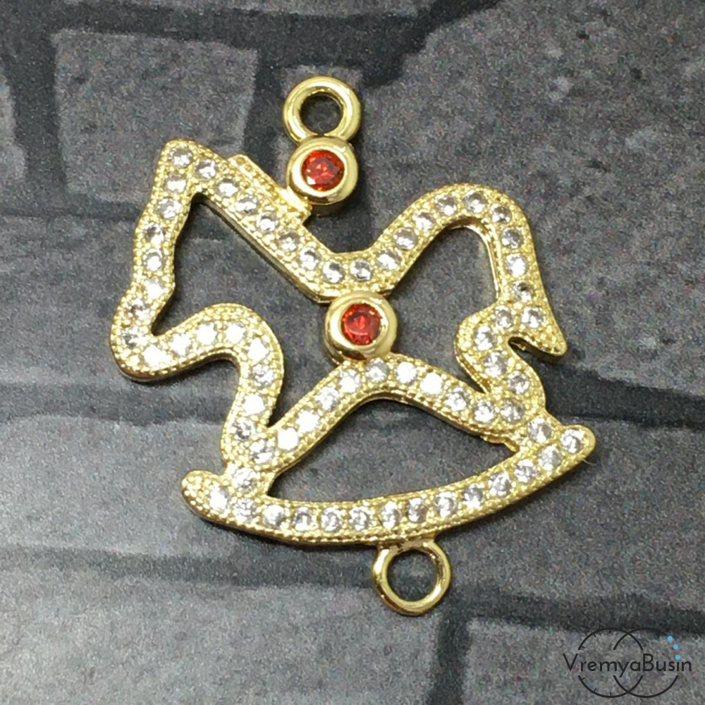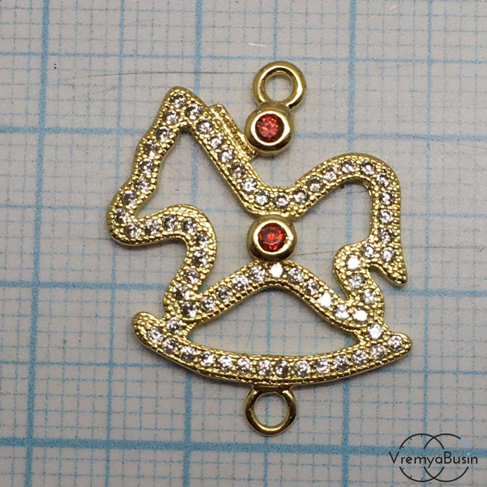Коннектор с фианитами, латунь с позолотой (1 шт.)