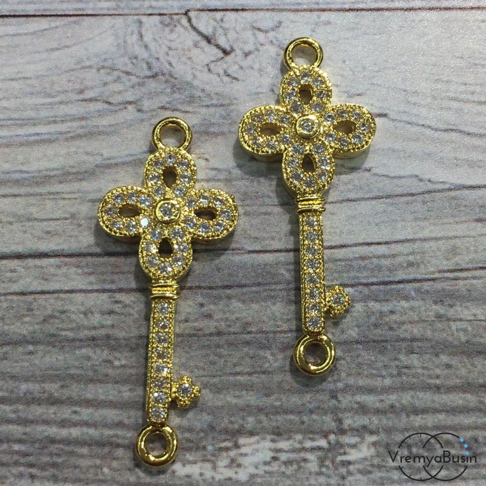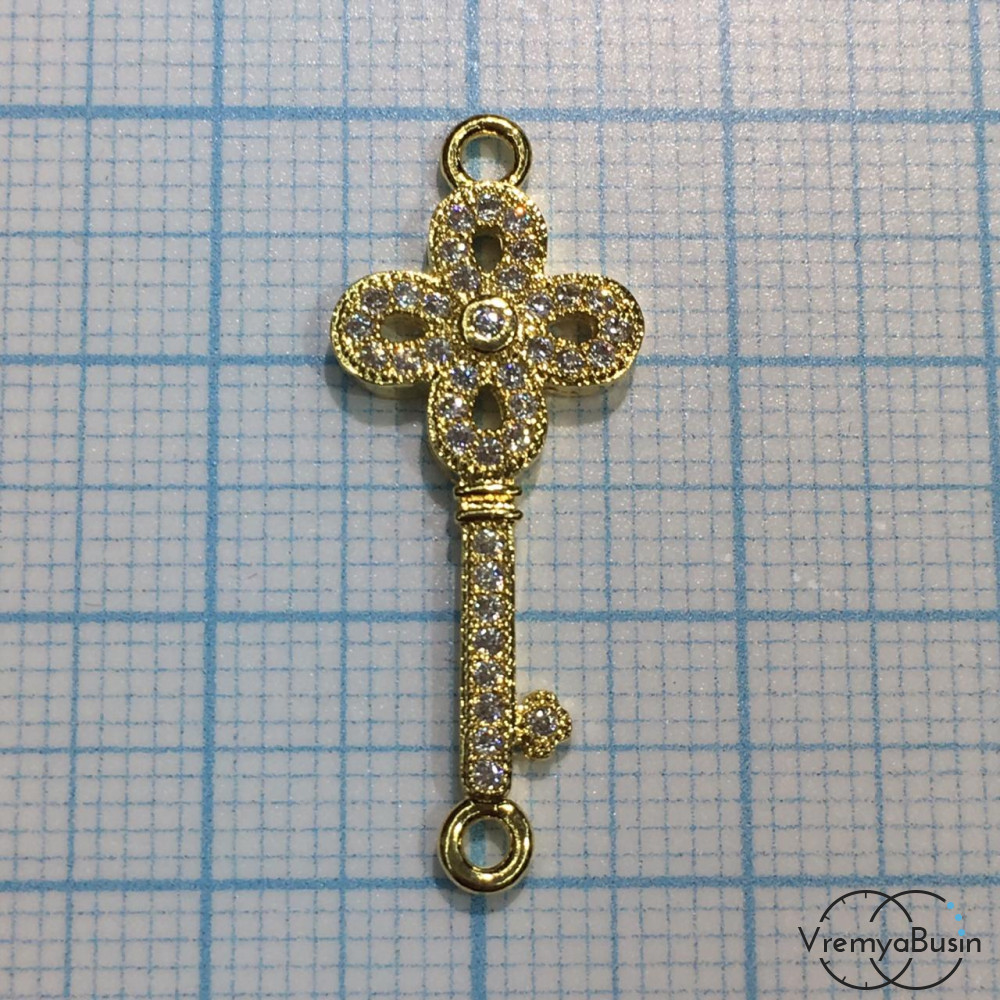 Коннектор с фианитами, латунь с позолотой (1 шт.)