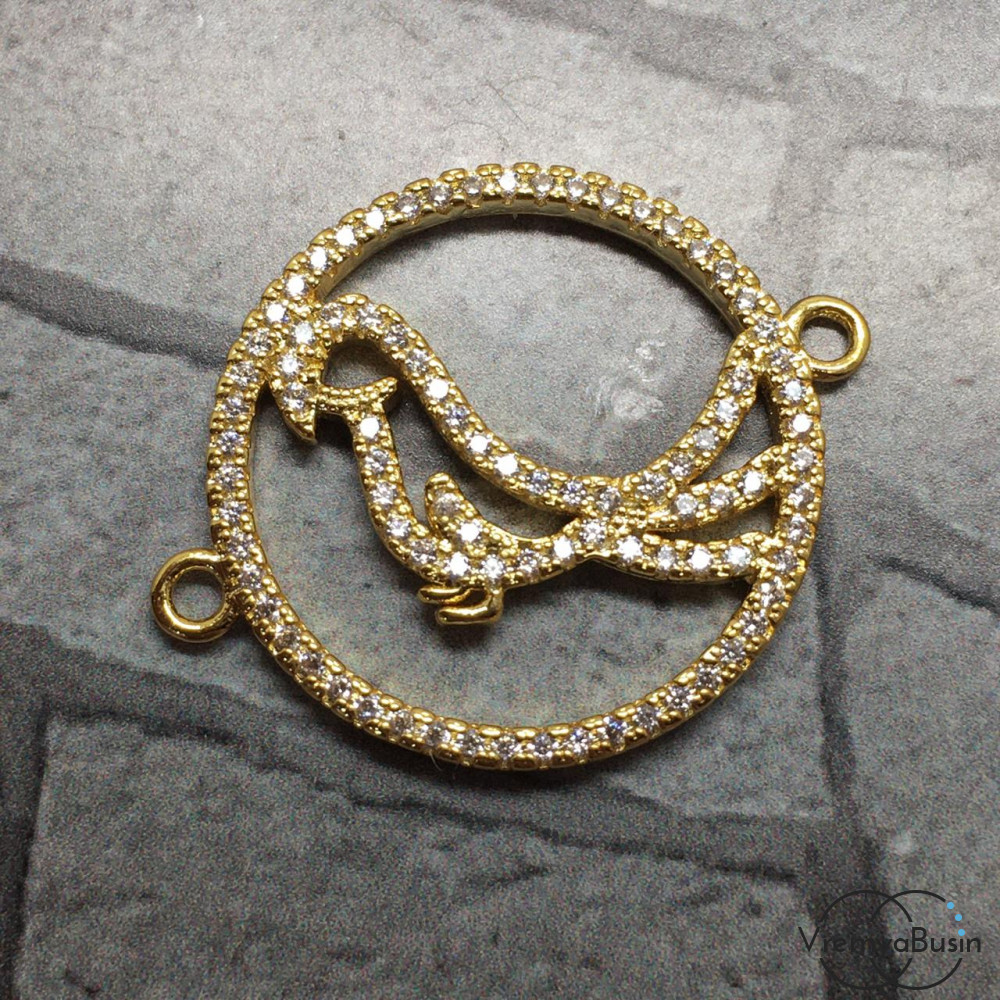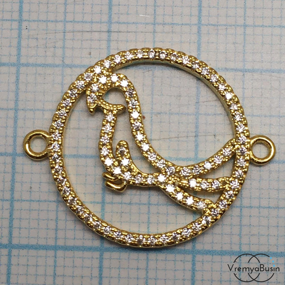 Коннектор с фианитами "Попугай", латунь с позолотой (1 шт.)