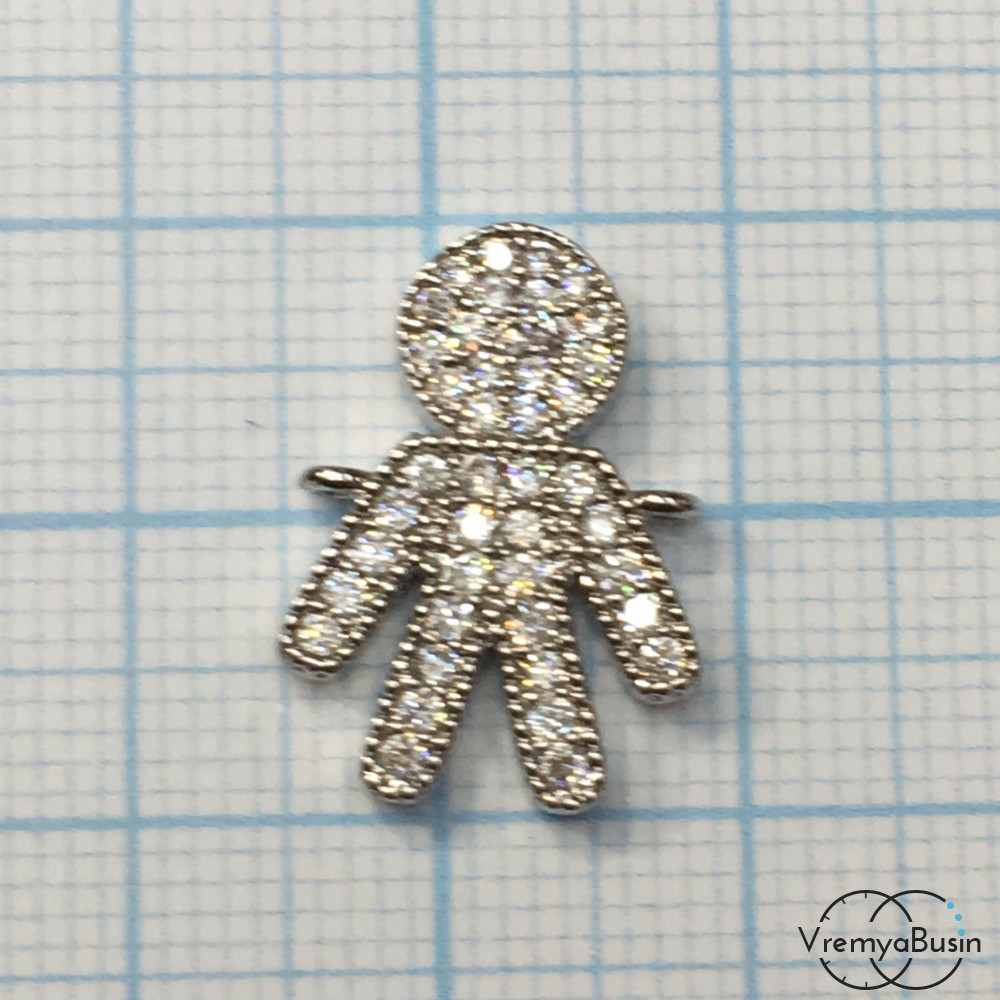 Коннектор с фианитами, латунь с родиевым покрытием (1 шт.)