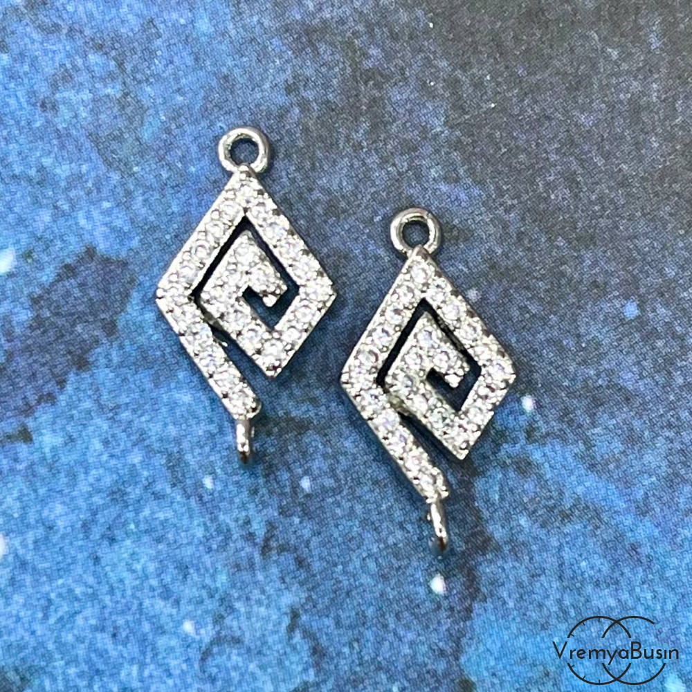• Коннектор с фианитами «Ромб», 9х17 мм,  латунь с родиевым покрытием (1 шт.)