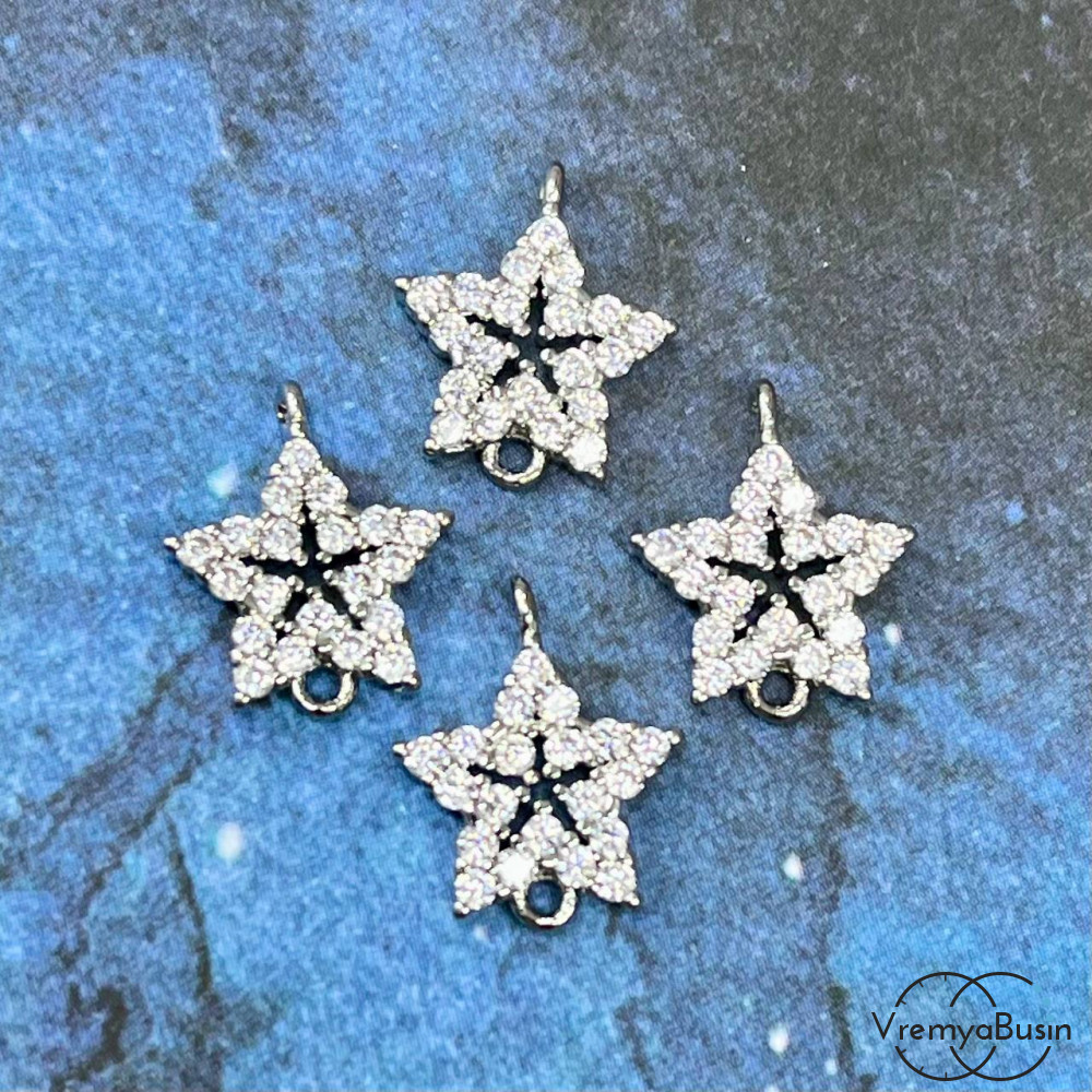 • Коннектор с фианитами «Звезда», 14х11 мм, латунь с родиевым покрытием (1 шт.)