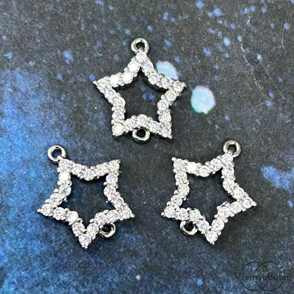 Коннектор с фианитами «Звезда», 14х13 мм, латунь с родиевым покрытием (1 шт.)